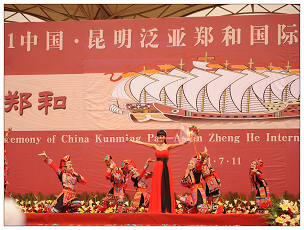 暑假期间,2011中国•昆明泛亚郑和国际文化旅游节开幕式在伟大航海家郑和的故乡晋宁县郑和文化广场隆重举行。院长靳丽芬教授带队,与郭海波副教授、鲁林副教授参加了开幕式文艺演出。