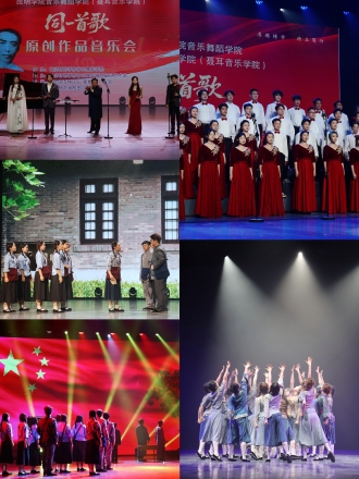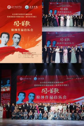 5月6日19:30,“同一首歌”原创作品音乐会在长沙师范学院田汉剧院举行。来自昆明学院音乐舞蹈学院(聂耳音乐学院)与长沙师范学院的师生齐聚于此,以音乐为画笔,绘就了一幅跨越时空、饱含深情的艺术画卷,共同讲好“杰出校友与国歌的故事”。
