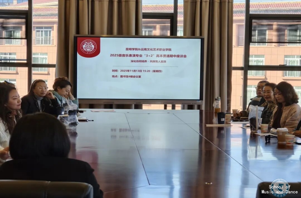 11月14日,校校协同育人专题座谈会召开,座谈会由云南文化职业艺术学院音乐学院副院长丁红芳主持,双方对高本贯通人才培养工作高度重视,昆明学院音乐舞蹈学院院长黄清林,昆明学院教务处副处长陈泽斌,音乐舞蹈学院音乐表演与作曲系主任、研究生教研室主任杨帆,音乐舞蹈学院研究生秘书田壮壮,云南文化职业艺术学院学院党委委员、音乐学院党支部书记张毅,教务处处长韩萍,教务处副处长徐维佳,音乐学院副院长(主持行政工作)和漩,音乐学院党支部副书记胡超帆,音乐学院教学秘书朱颖,2025级音乐表演专业“3+2”高本贯通班班主任赵承等师生出席会议。