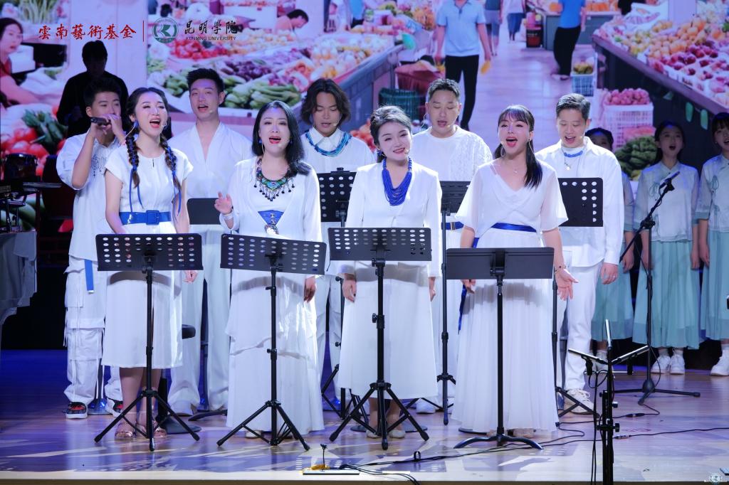 跨界创新,技术赋能艺术。作品创新性引入AIGC技术生成动态视觉背景,与音乐形成紧密呼应。主创团队强调,技术旨在“构建音画相生的叙事空间”,其核心仍是“以昆明老调为素材的音乐重构”。演出由雨滴人声乐团、昆明学院“聂耳之声”合唱团等艺术家联袂呈现,艺术总监龚婷表示:“作品探索的是地方文化记忆的当代表达,尤其面向青年群体。”