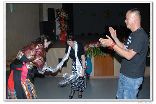演出结束时,领导和嘉宾兴奋的走上舞台,与班主任、学生亲切握手祝贺演出成功,并合影留念。陈校长、罗副校长等领导表示,演出的成功充分说明了音乐学院的教学质量是高的,我们的学生确实达到了“能上讲台,能上舞台”这一人才培养目标的要求。