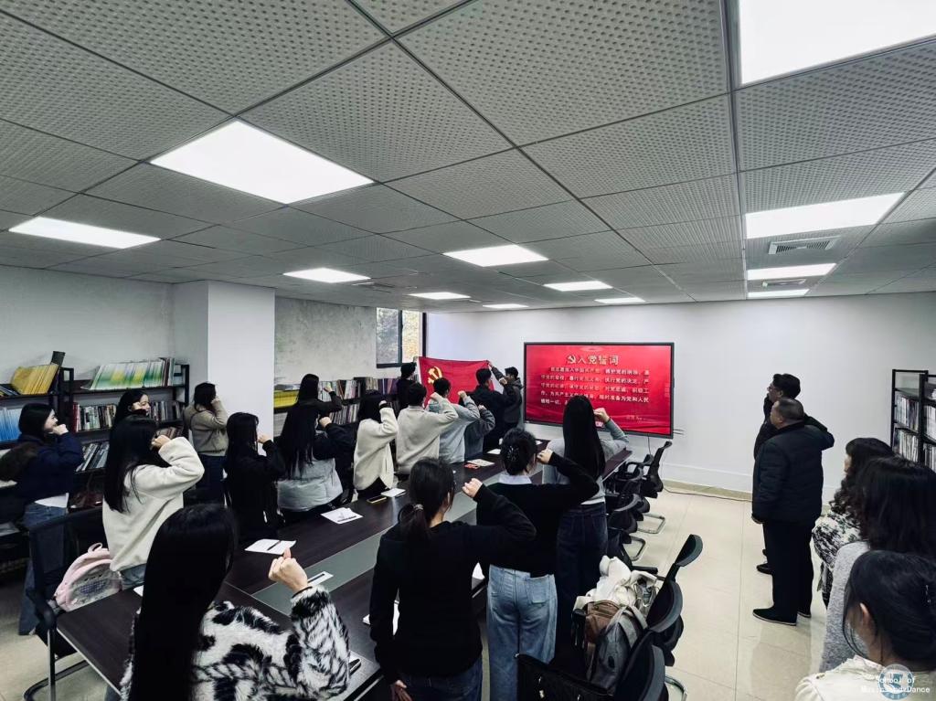 12月12日,音乐舞蹈学院在学生会堂2312会议室举行新党员宣誓仪式暨学习贯彻党的二十届四中全会精神主题党课活动。学院党委书记李贵平、副书记叶伟翔出席活动,全体新发展学生党员及老党员参加。活动旨在通过庄严仪式强化党员身份认同,以专题党课推动党的二十届四中全会精神入脑入心,为学院高质量发展凝聚红色力量。