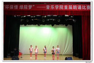 4月11日下午,我院团总支举办的“环保情、绿院梦”首届朗诵比赛决赛在音乐实践教室举行。进入决赛的12个节目形式丰富多样,经过激烈的角逐,共评出8个奖项,13级2班的《绿色希望》荣获一等奖。