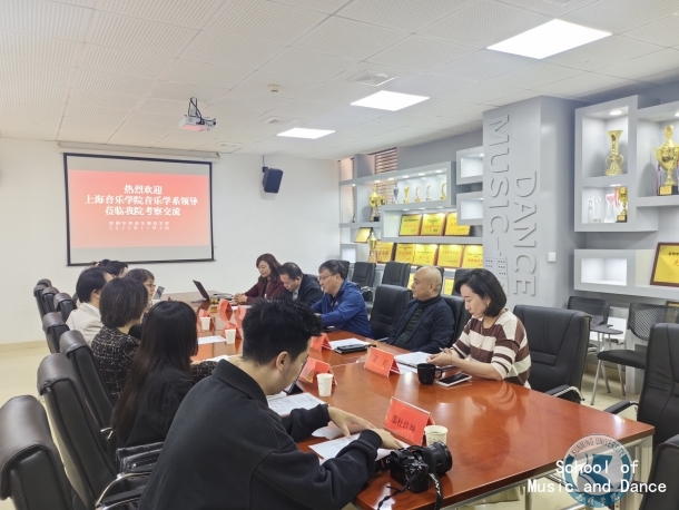 会上,杨爱民书记就我院党建工作进行了交流;黄清林院长介绍了学院高质量发展基本情况;叶伟翔副书记交流了我院就业工作成功做法和工作经验;龚婷副院长介绍了师资队伍建设情况;田应娟副院长介绍了学科专业建设情况。伍维曦主任介绍了上海音乐学院音乐学系基本情况;孟莉、张洋两位副书记分别就党建和学生工作进行了广泛交流,与会双方就加强科研合作、学科建设、人才培养、毕业生实习等工作达成初步共识。
